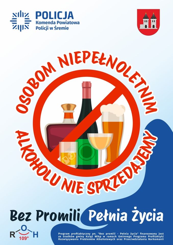 Gmina Książ Wielkopolski włączyła się w realizację programu profilaktycznego Komendy Powiatowej Policji w Śremie Bez promili pełnia życia. Celem programu jest uświadomienie uczniom w wieku 13 do 15 lat ich rodzicom oraz pedagogom zagrożeń wynikających ze spożywania alkoholu oraz konsekwencji zdrowotnych społecznych i prawnych.